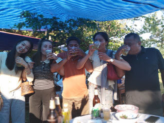 祈る言葉です。ラオス人は飲酒の最中に頻繁にグラスを合わせます。憩いの時間を大切にして、自分と相手の幸福を願う国民性の表れではないでしょうか。私はビジネス以外の面で現地の方とコミュニケーションを取るように努めています。ラオスの多くの農家にとっては売買契約を守ることよりも人付き合いを大事にして、助け合える関係性を作ることが重要のようだからです。